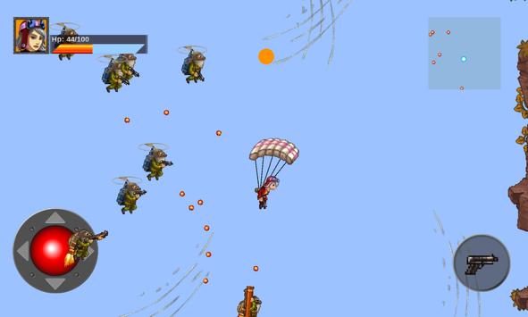 The Sky Soldier Shooting combines the adrenaline of platform-style games with the action of 2d shooters. Use the pad to move around and tap to jump and shoot