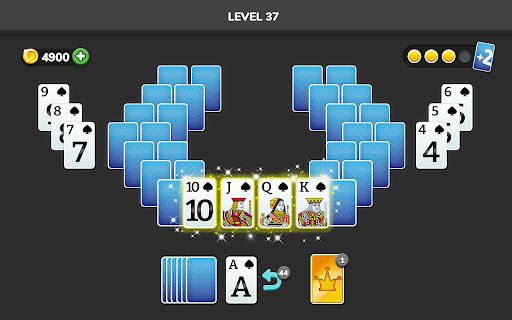 Here’s how to play tripeaks Solitaire: Drag cards with a single tap on the screen. The cards form a tableau consisting of three overlapping peaks. Your goal is to move the cards from the tableau into their waste piles, uncovering more cards further up the peaks. You win the level when you have removed all the cards from the tableau to the waste pile.