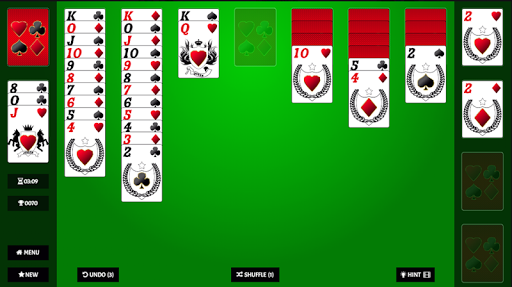 Play cards just with a single tap, using in game options like undo move, shuffle cards or move hint you have real chances to WIN THE GAME!