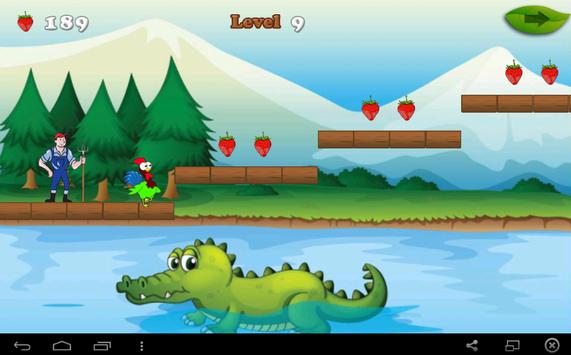 to hard ones, your role is to help your turkey to escape from the farmer, and reach the end of every level, in addition to collecting strawberries, wich will be showed in the top of the screen, as your score.