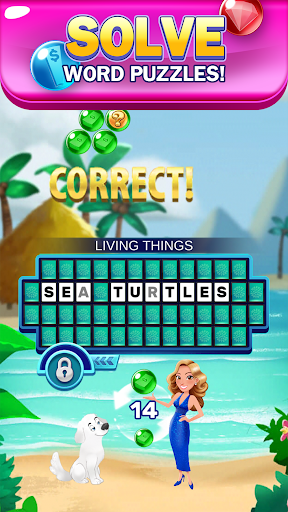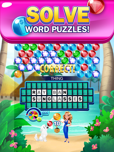Pop the bubbles and play word games with Vanna White as your host and her favorite furry friends, Stella and Thunder. Tackle word puzzles and escape to exotic getaways as you spin, pop, and solve word puzzles written by the show's very own writers.