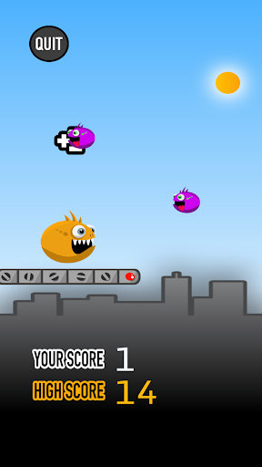 Creature Bounce is one of the most addicting games on the App Store. Play as a "creature" (The yellow guy) who bounces across floating platforms on the screen. Bounce across the platforms and collect as many "baby creatures" (purple guys) as you can. Use the platforms to keep the creature from falling to his death and resetting your beloved high score. Warning: This game is not only fun and addicting, but difficult! See if you can beat your previous high score and keep the fun bouncing along!