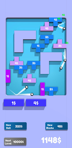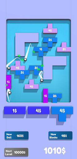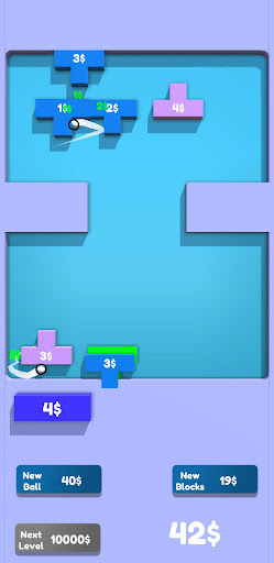 Place Blocks for balls to hit and give out money. Try to make as much money as possible.