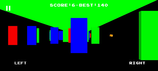 RGB Runner is a simple 3D endless runner game in first person, where you'll run through a world made by red, green and blue blocks that you'll need to hit or avoid. Compete with your friends! Who will do the best score?