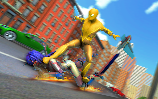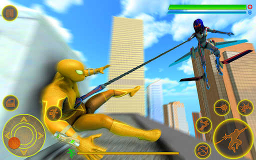 Being a spider superhero your role is to completely remove or eliminate city crimes by chasing and fighting the criminals & Gangsters. Now, let's discuss some features of the character, you are going to play in this superhero game. In this spider hero or rope hero game the hero can fly with the help of a rope in hero town. Rope hero town is your motherland in these Spider hero games where the crime rate is touching its peak and people are frightened in Spider Rope Hero games. You have to put an end to this increasing crime rate. There comes your role of a rope hero to fight and eliminate this crime from this city. Chase down the gangsters and take a feel of the superhero race in this game of town and prove your cred. Remember you are a spider superhero and you can fly with the help of a rope or a spider-man web among skyscrapers of rope hero Fighting games 3d.