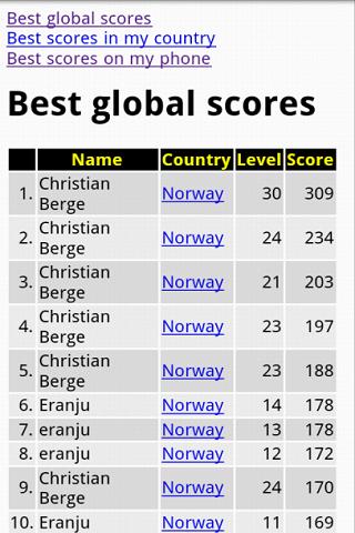 The game includes a possibility to post your high scores to the Internet. This is of course fun, but remember that the names (as well as your country) you post to the high score list are public and can be seen by anyone. The high score list function depends on our web server. We give no guarantee on server uptime, but in case of a server failure, you can save your score and upload it when the server is functioning again.
