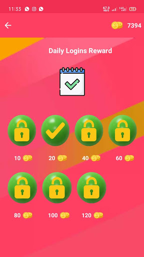 Here you can get a number of coins according to daily check in activity in a game.
