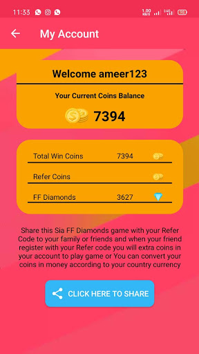 * When you don't have enough spin chance to play a game then you can get a free chance from your collected FF diamond.