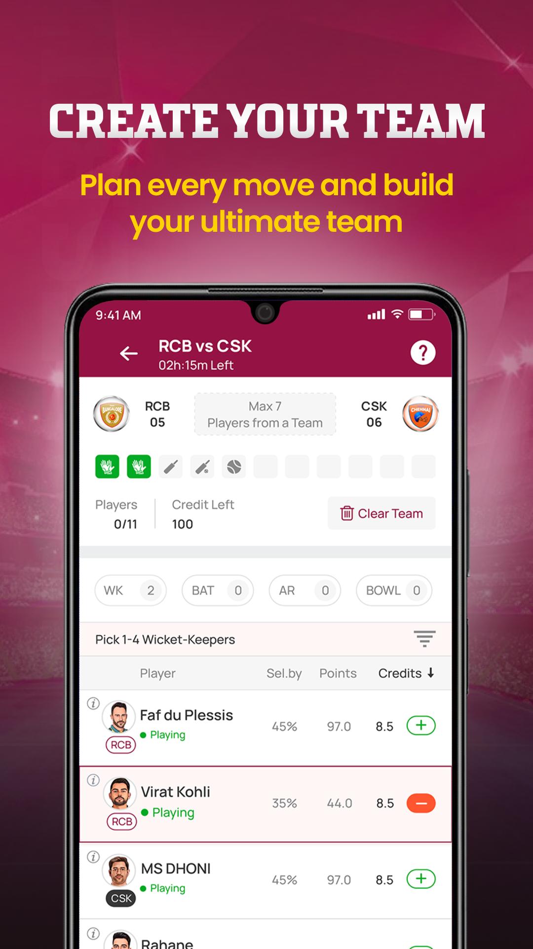 2. Create Your Team: Set up your ultimate Fantasy team of your choice and enjoy the finest fantasy game experience.