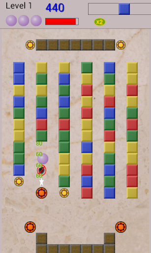 Extra points are awarded for destroying three or more blocks of the same colour in a row.
