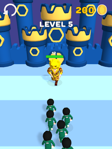 In 456 Clash your task is to gather the strongest army of players to finish first in the squid game challenge and take down the mighty boss. Merge characters, boost their skills to become more powerful. Defeat enemies to get the gold and enlarge your army. Can you collect all the 456 players?