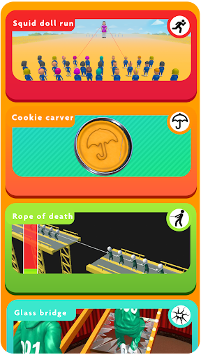 Survive the race to the finish line. 456 survival octopus games feature red light and green light. Don't miss the ultimate squid doll survival game which is a real roller coaster. In these octopus games, during the squid doll game, a gunman will appear at any moment to kill you in this stickman ragdoll game. The only way out of this hell is to win cookie carver games. Challenge 456 survival game for Android. Play four mini-games to win.