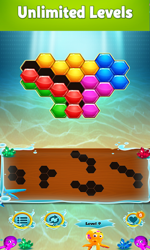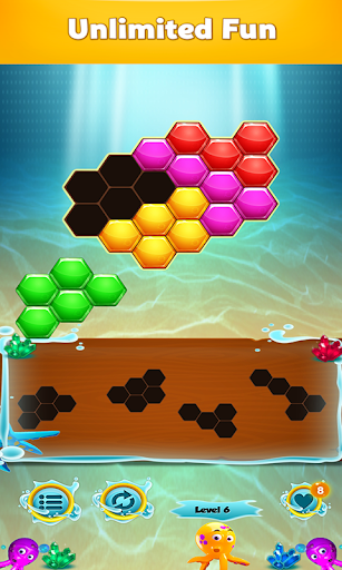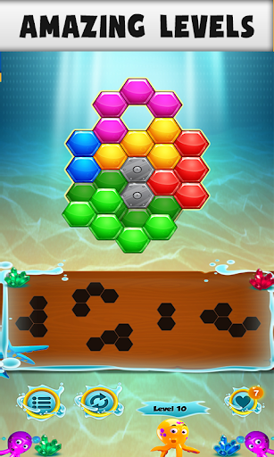 this gaming app has unique hexagonal pieces puzzle to test your mind and aptitude to reach various levels and imaginations...try and surpass various levels in the game. Enjoy puzzle board with multiple levels or challenges..
