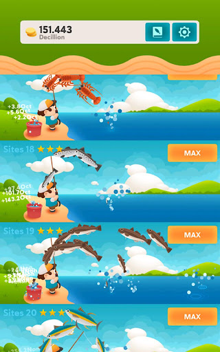 You can recruit employees with different abilities to make money for your fishing, and you can train your employees to make them more efficient, more capable, and more close to large and rare fish!