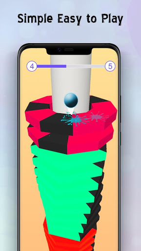 You can just hold finger and ball fall at right stack and ball will cut stack piece. Just drop ball on the right stack in color rings stack. Stack Helix 3d Ball Crush Drop Smasher is one of the most addictive arcade games where you play through colorful platforms and you need to smash your way through to the end line of game. If your ball hit on Black stack piece platform, then it's game over! Your stack box will break into pieces and you'll have to start your game again. Choose your stack piece fall strategy and blast through platforms end. You can go for full speed on stack fall or slowly wait for the right chances to jump on right stack through the same color platforms.
