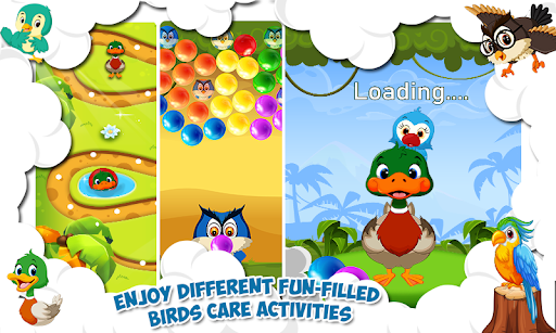 In the first step, we need to make the bird neat and clean. Give a warm bubble bath by the cleaning, wiping and bathing. In the 2nd next step dressing process of the bird Unique fashionista dresses of the birds are super hero dresses. Dress up your bird in adorable matching outfits! In the 3rd step, we have to complete the energy of the super bird hero by feeding some insects, fruits, juice, etc. Feed and care the little Birds.