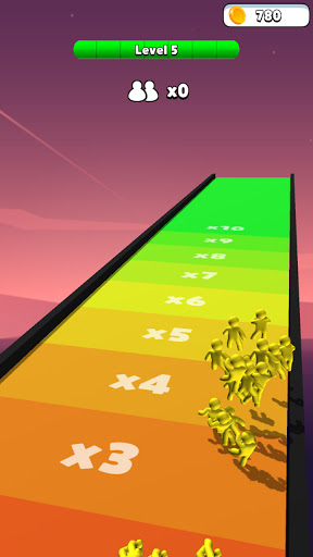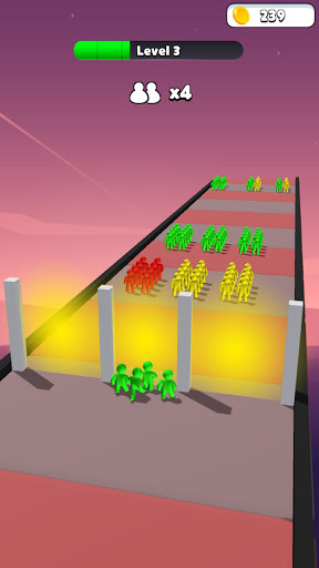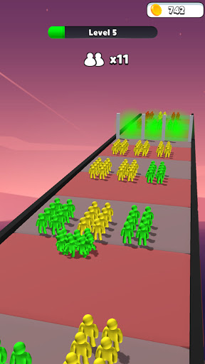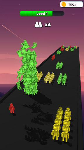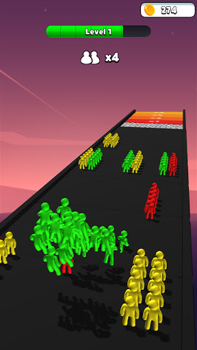 Upgrade your start stickman-number,swipe with your fingers to control your running stickman,Collect the humans with the same color as you to stack them, and avoid those who are not like your color.Save as many members of the crowd as possible.