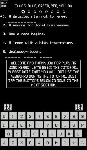As you can see, the concept of the game isn't too far off from a crossword puzzle. You’re given clues as well as the number of letters in each answer. However, instead of solving clues by crisscrossing words, you’re given clue words (in this case, the clues were “WORD” and “HEARD”) for each category and must then use at least one clue word in each of the answers.