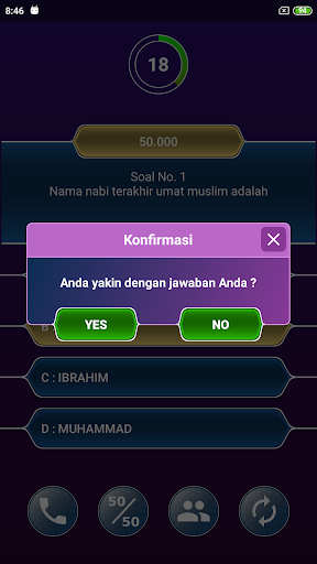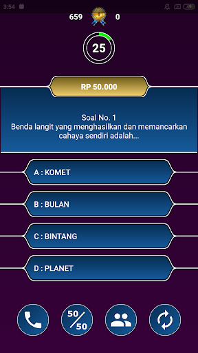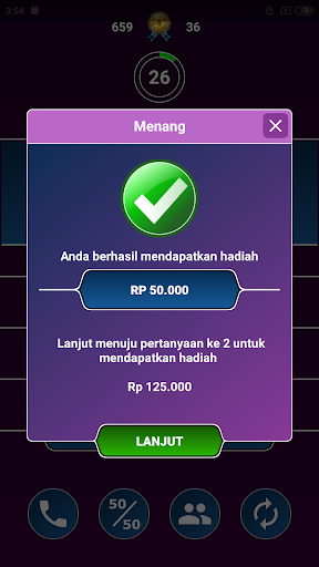 2.Lima puluh-lima puluh, Anda bisa memilih bantuan ini untuk menghilangkan dua pilihan yang salah.