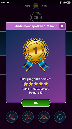 Harap diingat, Kuis pintar 1 miliar ini hanya sebuah permainan simulasi, artinya berapapun hadiah yang anda dapatkan di kuis ini bukanlah uang yang benar-benar real dan tidak bisa dicairkan, namun hanya berupa hadiah dalam game semata.