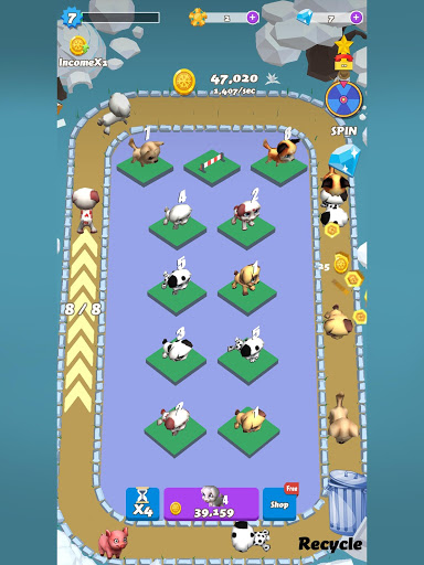Animals Paradise is a simulation place game. You mission in the game is to raise lovely animals and merge the same two to unlock a new unknown animals. Come to tap and merge to create a paradise for the animals.