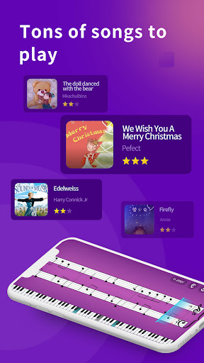 Do you want to learn the piano? Now it's possible with Piano Partner Lessons application. This music app is very simple to use. You can choose from many songs!