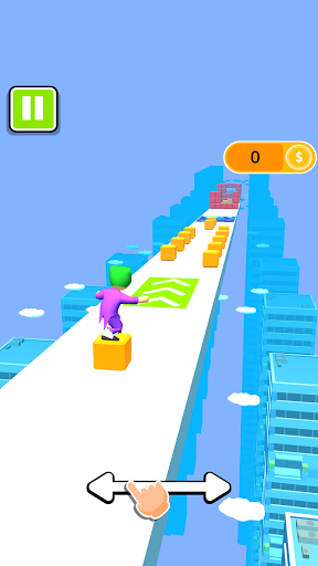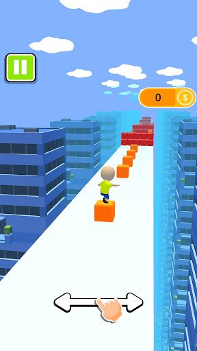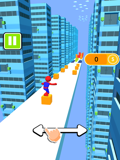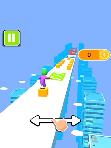 Amazing control and cool sound tracks. Collect shining coins and get bonus reward for surfing higher stacks. Higher the cube tower, higher the surfing reward.