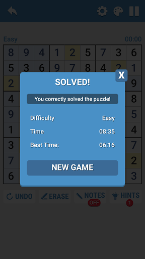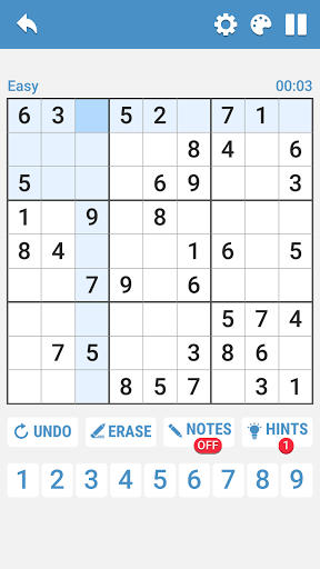 Choose your favorite input mode : Number first or cell first to play easy sudoku.