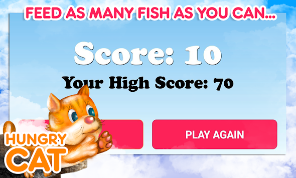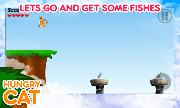 Hungry Cat is a simple, fun, addictive and free game for all ages. Jump across the rocks, collecting the fishes as you go and get the highest score. Make sure the kitten lands safely on the rock.
