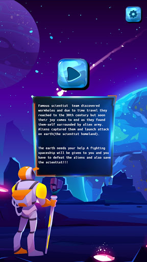 Famous scientist team discovered wormholes and due to time travel they reached to the 30th century but soon their joy comes to end as they found them-self surrounded by alien army. Aliens captured them and launch attack on earth(the scientist homeland). We need your help as alien launch attack on Our galaxy. Their space shooter are coming to destroy all galactica . Please take the ship and save galaxy from alien Space shooter.