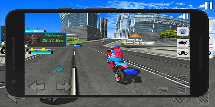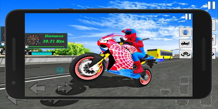 Bike Super Hero Stunt Driver Racing game has a huge city full of danger and adventure for you to ride. Physics of bikes are reality base and sounds are what makes it more fun, get behind the wheels of super hero bike and be a super hero, don't need to afraid of enemies just hit your super hero bike around with no fear.