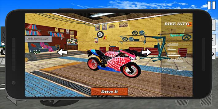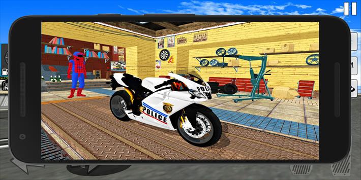 Super Hero Bike Racing is an amazing simulator of all time, Super hero bikes are there for you in garage to ride on and do crazy stuff. Super charged bike is a nice ride to enjoy on the long roads of open city, Bike Super Hero Stunt Driver Racing has beautiful city to ride on as a super hero, rescue the one's in danger and help people around by riding and watching law breakers. Do Crazy tricks like jumping off on ramps, slipping across the corners and driving like a maniac, crashing your super bike in town, enjoying the off road on super trial bikes, hit the roads with Police lights and siren sounds when you feel like rushing the bike across city streets.