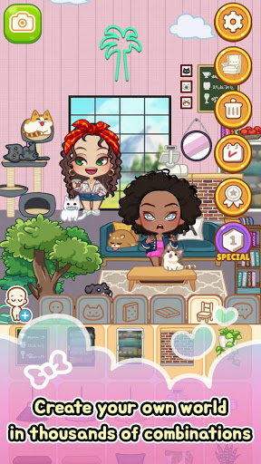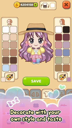 Dress up your own idol and decorate her private room. Play various mini games to earn coins and unlock special costumes. Customize your character from Hair, Top, Bottom, Facial, Skin color, Sticker, Pets etc.