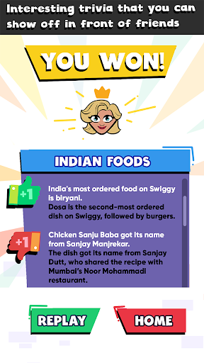Have lot of fun playing with friends and family. Along side, learn interesting trivia for each question at the end of the game which you can use it to appear smarter than your friends.