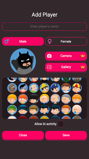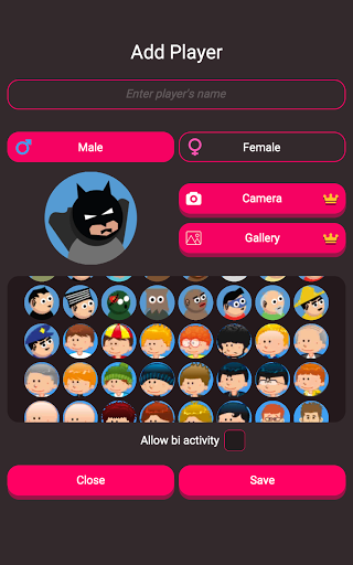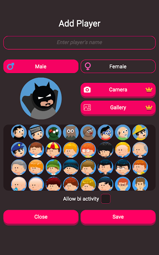 ☆ Add your own names, set the gender and avatar of the players! You can even attach your own pictures.