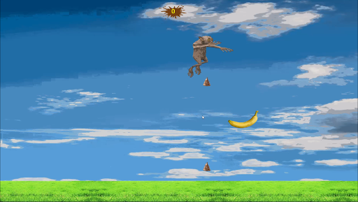 Collect as many bananas without touching the ground, trees or the roof while you doodoo on the ground!