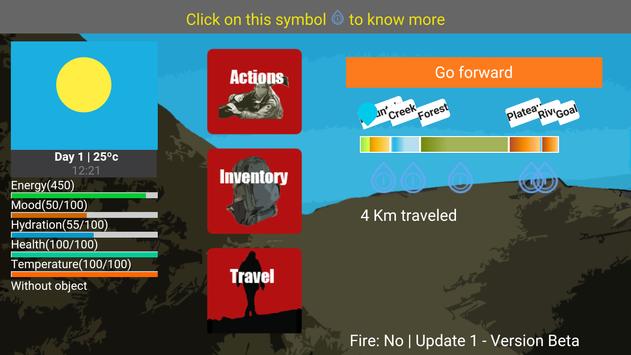 Try to survive and travel to a safe place. Survival in nature is a simulation game in which you have to decide how to spend their time and what action is most important to you in order to survive: building a shelter, finding food, water, travel, collecting firewood ... fire, hunting or fishing