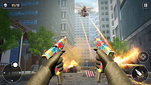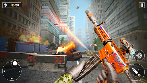 Select your mission and attack on enemy, because terrorist plane in gun shooting games totally destroyed our city, our missions to blast and encounter terrorist basement. If you are fps commando or commando counter then strike mission and save your city.