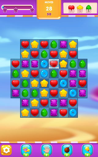 Various types of amazing and yummy candies are available in different shapes and colors. Swipe to match identical candies of the same shape and color to crush them.