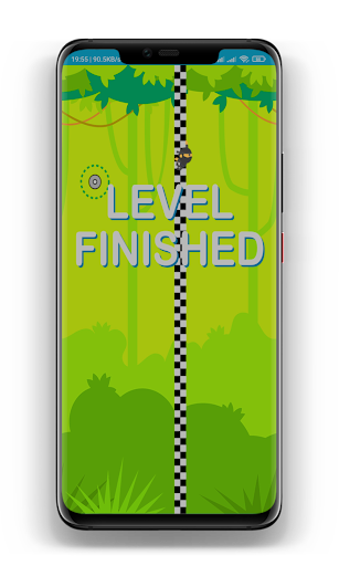 Launch the monkey off the first trampoline, or click and hold to grab the nearest ring. Swing back and forth to gain momentum, then release to launch forward. Dodge the obstacles and fly past the finish line!