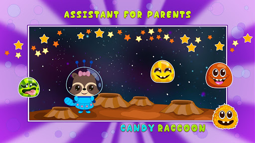 During the game, the child will be able to perform simple tasks and, together with Candy Raccoon, enjoy his/her achievements.