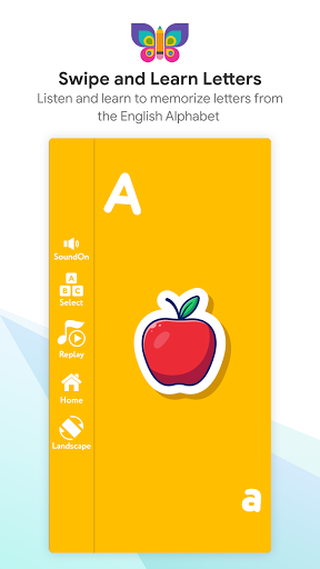 This section helps children learn alphabet in the most fun way. Each alphabet appears on the screen with an object to help them remember it easily. The sound will also help your child learn what it is on the screen. This is how they learn faster, and visual aids help them memorize alphabet. One can swipe back and forth to move in the alphabetical order. Users can choose to use this exercise in the landscape or portrait mode on their phones.