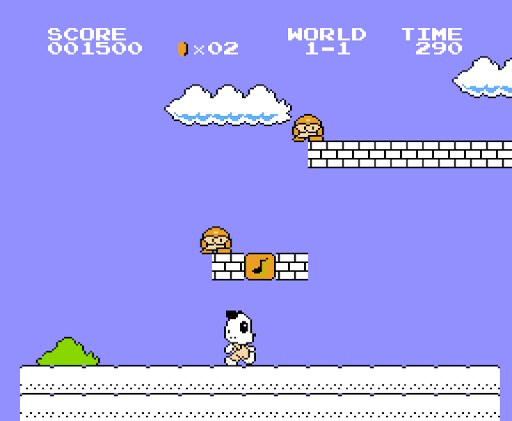 The game world features coins scattered around for Panda to collect and special bricks marked with a music note, which when hit from below by Panda may reveal more coins or a special item.
