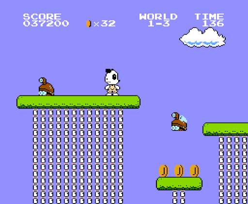 Players start with a certain number of lives and may gain additional lives by picking up Green 1-Up Potion hidden in bricks, or by collecting 100 coins, defeating several enemies in a row with a shell, or bouncing on enemies successively without touching the ground. Panda loses a life if he takes damage while small, falls in a bottomless pit, or runs out of time. The game ends when the player runs out of lives, although a button input can be used on the game over screen to continue from the first level of the world in which the player died.