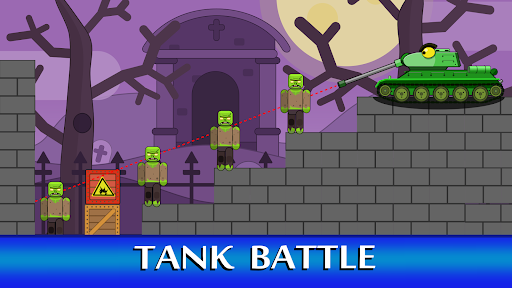 TANK BATTLE Use the full potential of your brain and the bullet echo to protect the whole world from the invasion of zombies. This is a real war against bosses and their minions using cannons and well-aimed shots. The battle takes place in different locations, you have to clear the cemetery, the black forest and the city!