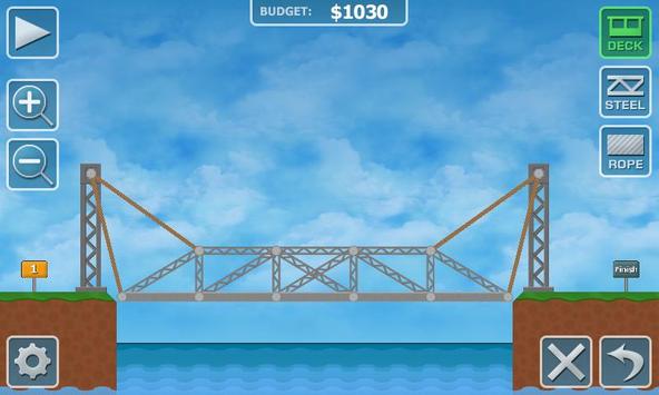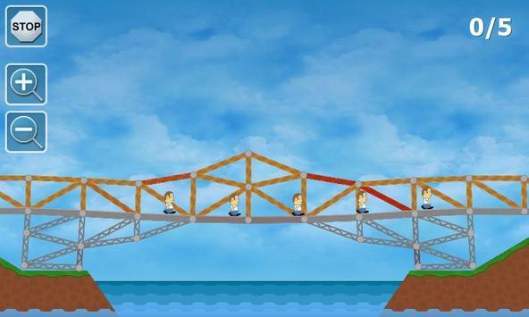 Construct a bridge with various materials and a limited budget or parts to get all people across to a finish area. There are 2 different chapters in the game. In chapter 1 you have a limited amount of money. In chapter 2 you have limited amount of parts to build a bridge.