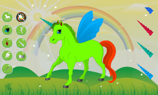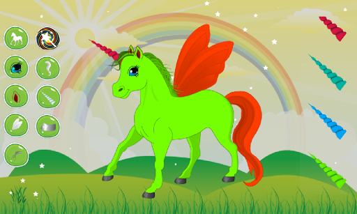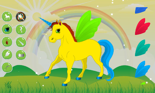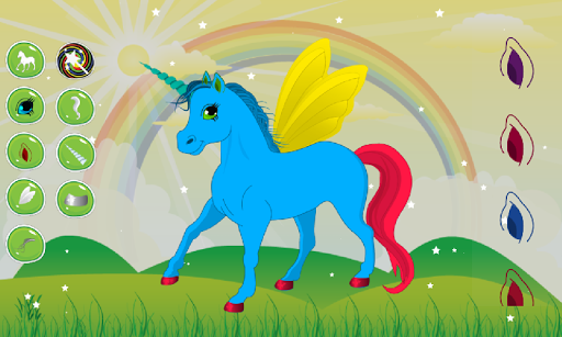 In this game there is a Unicorn in stand or fly state in a village with green grass with colorful background. At left of the screen there are buttons to select different parts of body of unicorn and on the right side of the screen color options are presented. First you select the body part then you can choose the color to apply on that part of unicorn body that way you makeup your unicorn. There is a large range of colors given as option like pink, red, yell, green and orange etc.