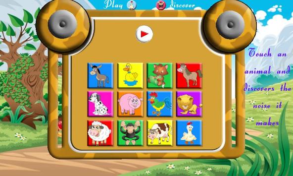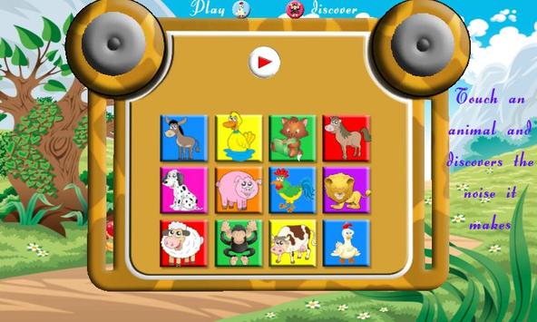 This application is a game and a discovery activity. In the activity of discovery just press on an animal to listen to the noise it can make. Game mode a sound is played at random, then your child must recognize the animal that corresponds to it.