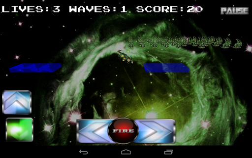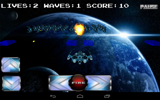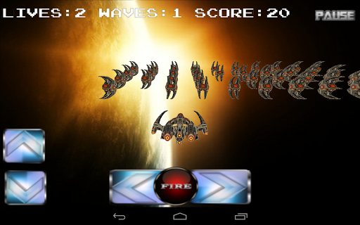 aliens,the player control a laser canon that can move horizontally in the air,rows of aliens move sideways while approching you and throwing missiles,