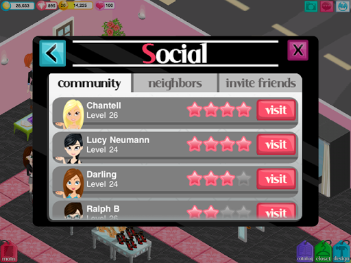 - SOCIALIZE with sister boutiques, and collect bonuses from other fashionistas!